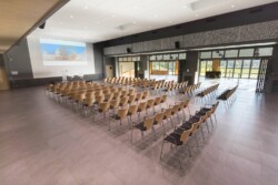 Ici, le mobilier s’affiche résolument contemporain, la technologie est partout et la modularité des salles est surprenante, le Château propose même un auditorium de 460 places.